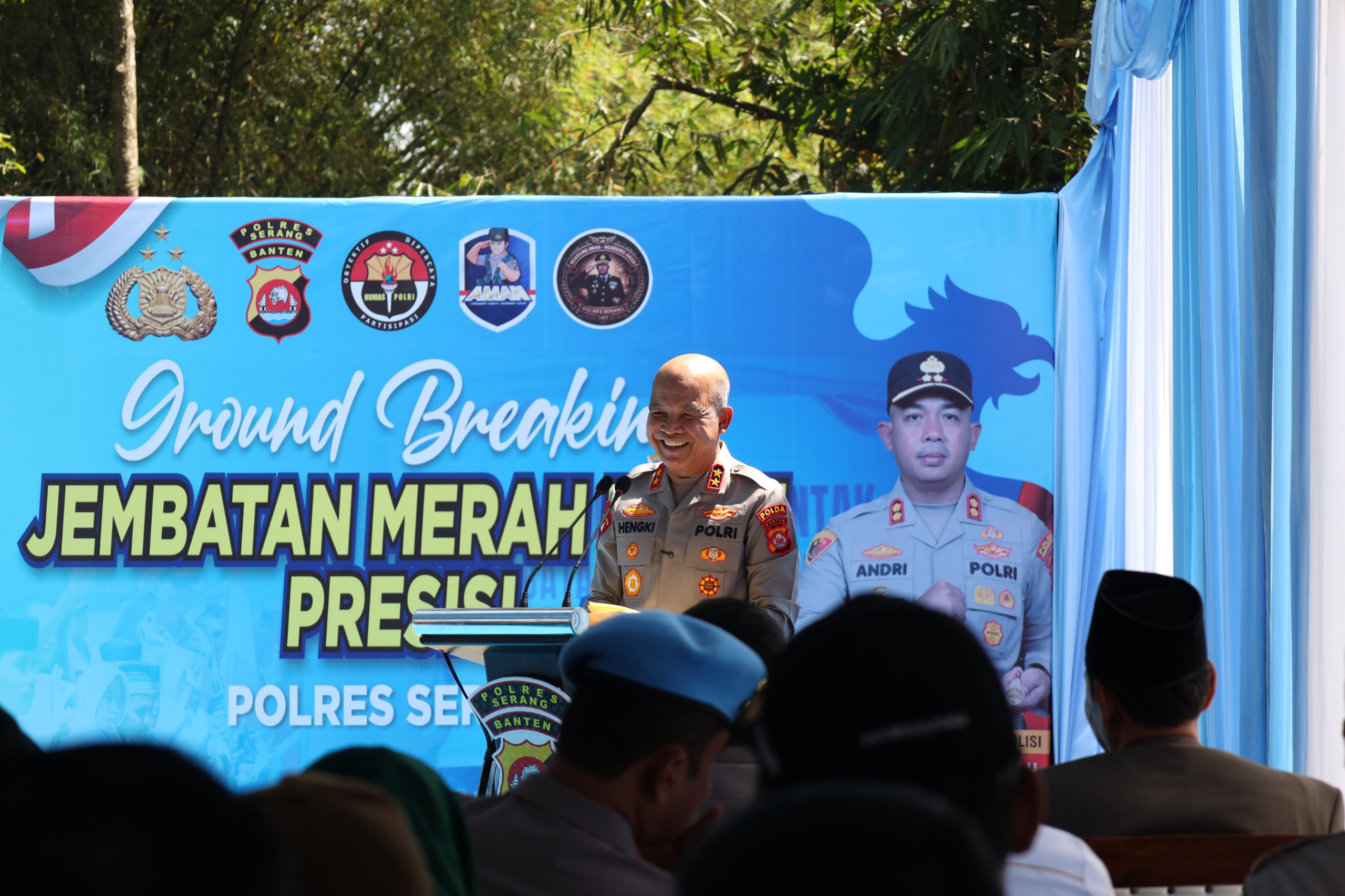 Serang Banten.CNC MEDIA Kapolda Banten Irjen Pol Hengki meresmikan Ground Breaking Pembangunan Jembatan Merah Putih Presisi Polres Serang yang dilaksanakan di Kp. Sadea RT 011/005, Desa Pasir Buyut, Kecamatan Jawilan, Kabupaten Serang pada Rabu (15/04).