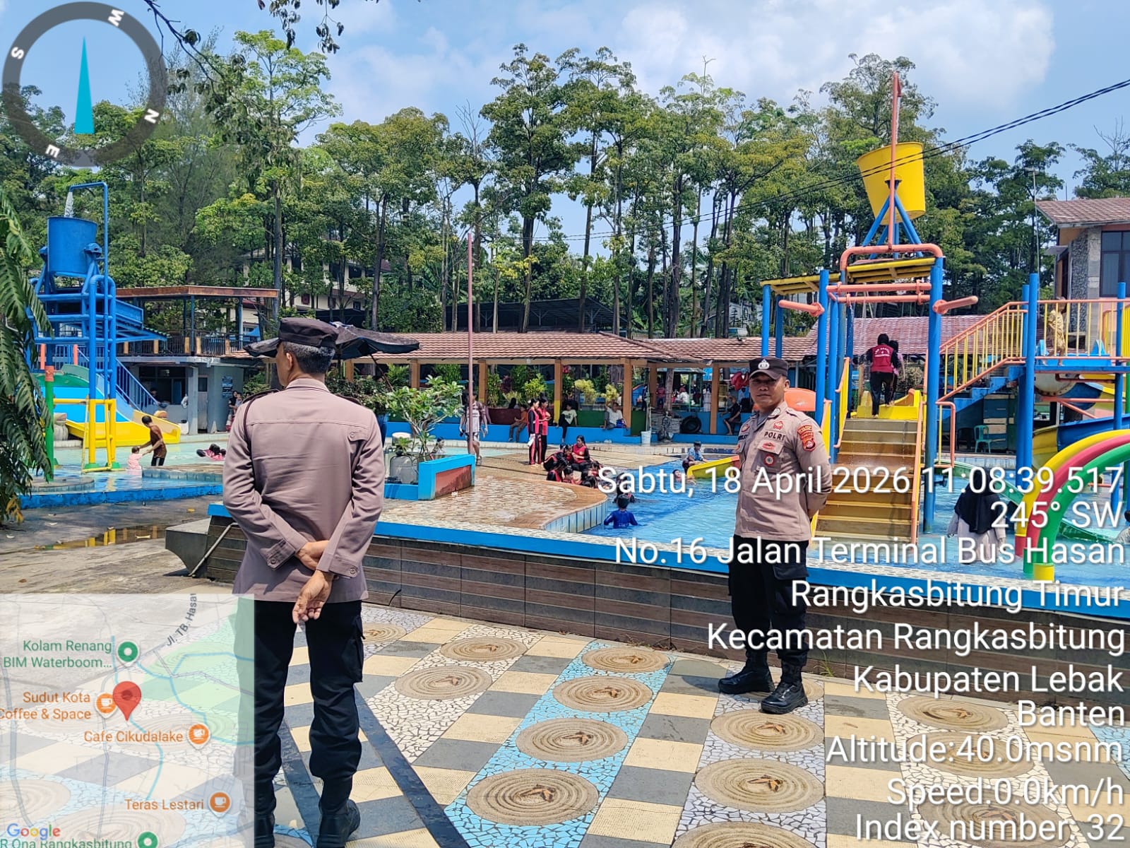 Lebak . CNC MEDIA – Anggota Kepolisian Sektor (Polsek) Rangkasbitung dari unit KSPKT melaksanakan kegiatan monitoring dan pengamanan di objek wisata Kolam Renang BIM, Sabtu (18/4/2026).