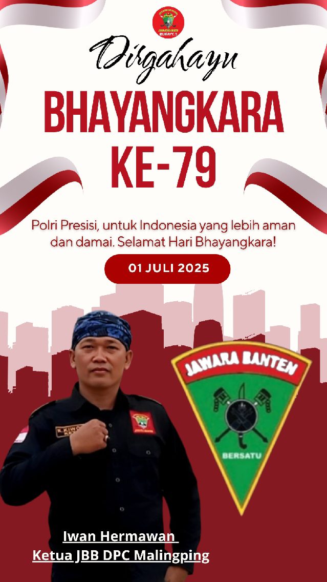 LEBAK, CNC MEDIA – Dalam rangka memperingati Hari Ulang Tahun (HUT) Bhayangkara ke-79, organisasi Jawara Banten Bersatu (JBB) DPC Malingping menyampaikan ucapan selamat dan apresiasi tinggi kepada seluruh jajaran Kepolisian Republik Indonesia, khususnya Polsek Malingping.