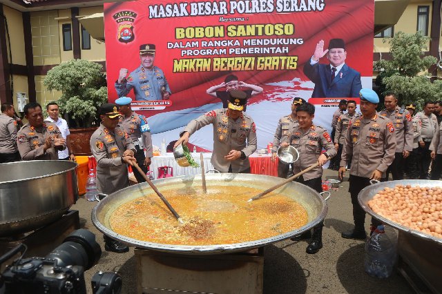 Kapolda Irjen Suyudi Ario Seto mengatakan bahwa acara masak dan makan besar ini merupakan bagian dari program pemerintah Prabowo Subianto makan bergizi gratis yang diikuti 1.000 murid sekolah dasar dari 12 Polsek jajaran Polres Serang.
