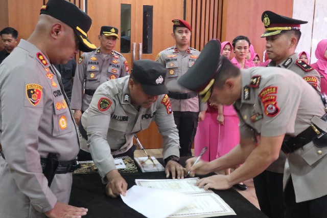 “Untuk pejabat baru, segera lakukan komunikasi dan koordinasi yang baik dengan instansi terkait, muspika, tomas, dan toga dalam mewujudkan sinergitas dan mewujudkan situasi kamtibmas yang kondusif,” tandasnya.