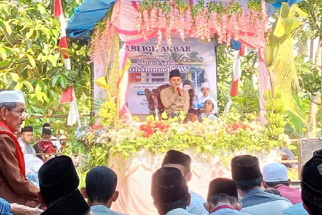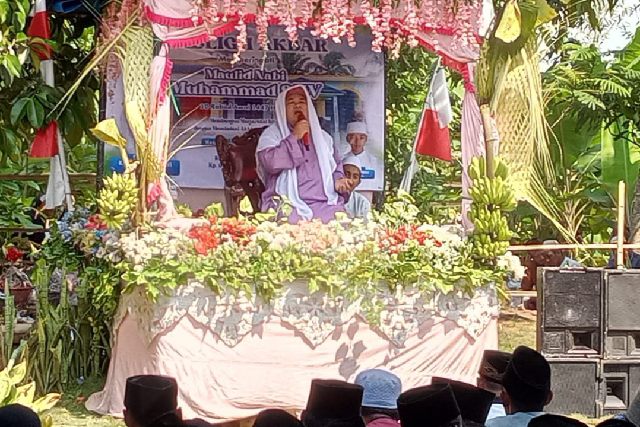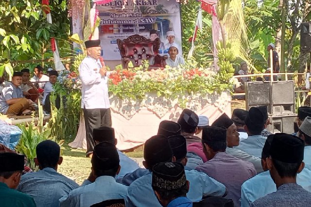 Acara yang berlangsung khidmat dan penuh semangat keagamaan ini dihadiri oleh ribuan jamaah dari berbagai pelosok desa. Tabligh Akbar menghadirkan penceramah utama K.H. Kholid Nawawi dari Pandeglang, yang menyampaikan pesan-pesan spiritual dan pentingnya meneladani akhlak Rasulullah dalam kehidupan bermasyarakat.