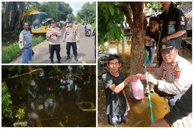 Alhasil, Kapolsek Wanasalam AKP Subara meminta bantuan pada perusahaan yang sedang dibangun di sana yang dituding oleh warga ikut andil terjadinya genangan banjir.