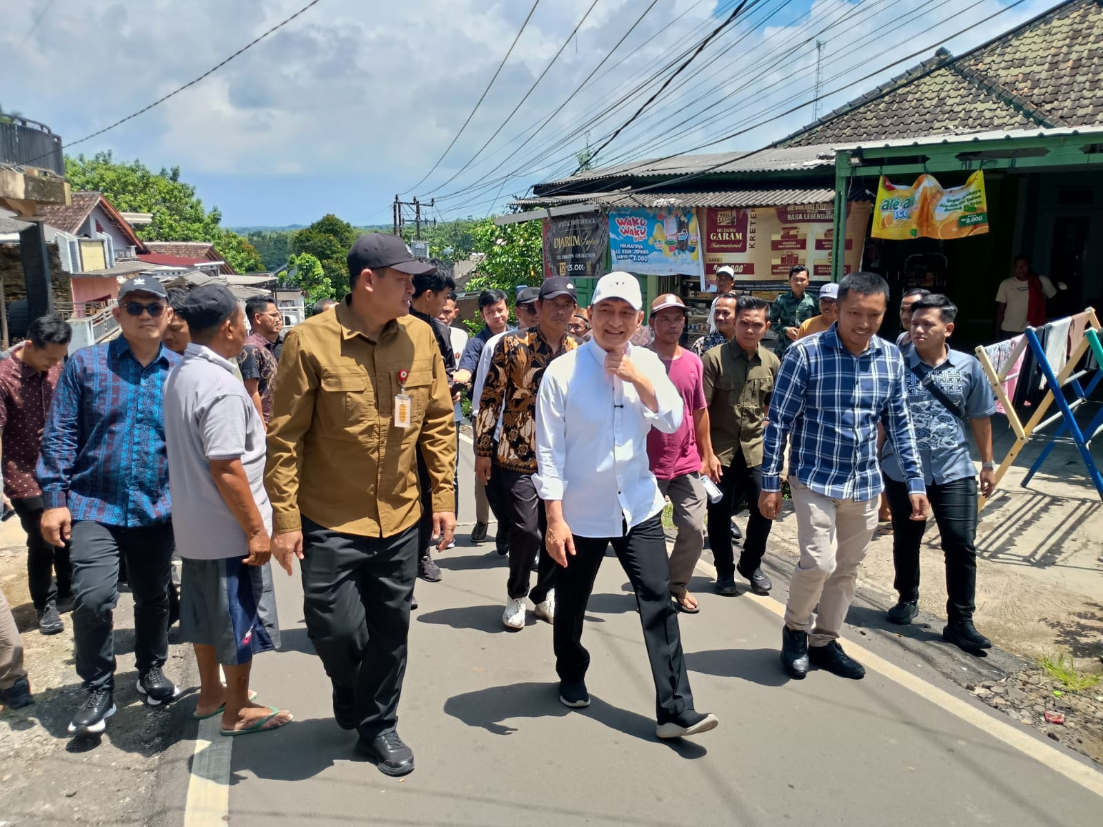“Ini kepada warga gimana perasaannya, senang kan jalannya sudah bagus. Kalau sudah bagus seperti ini, tolong dijaga, di pelihara, mobil besar dan bermuatan berat jangan dikasih masuk. Lalu bila ada saluran air, tolong jangan ditutup oleh halaman rumah,” ujarnya kepada warga yang mengerumuni.